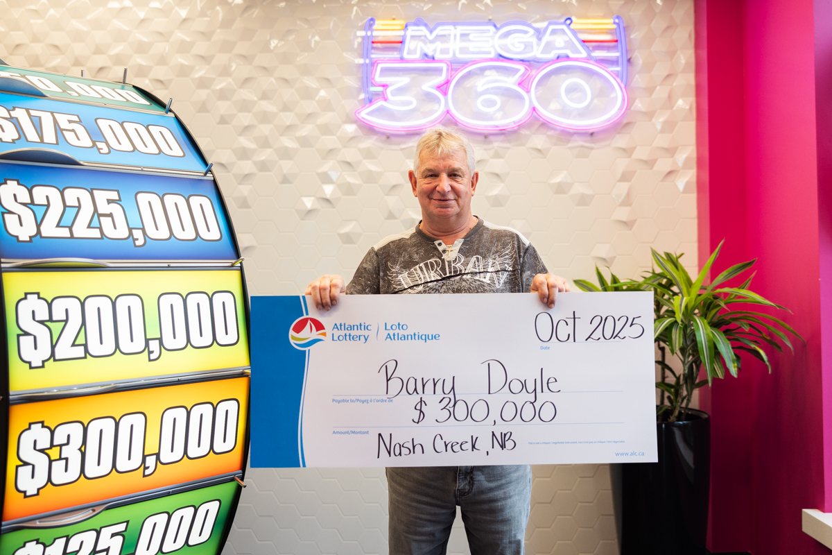 Pour Barry Doyle, de Nash Creek au Nouveau-Brunswick, gagner n’a rien de nouveau, car il y a un peu plus de dix ans, il a empoché près de 70 000 $ au Lotto Max. Cette fois-ci, M. Doyle a tourné la roue MEGA 360 et a gagné 300 000 $, son deuxième gros lot.